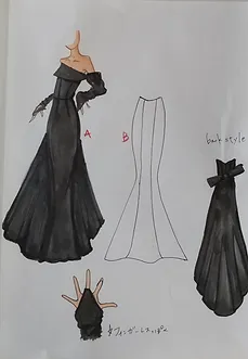 お客様がお持ちいただいたドレス写真を参考に、アレンジしながらデザイン画を描きました。